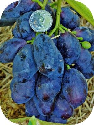 Ukrán magán nemesítés (Kalugin). Szülők: Talisman x Velika. Érési idő: 115-125 nap. (aug. közepe- második fele). Erős növekedésű. Fürt: 700- 1500 gr.,kúpos, közepesen laza. Bogyó: 42 x 26 mm., 18-20 (30) gr. kék- fekete, húsos lédús, harmonikus ízű. Cukor: 17-20 %, sav:6-7 gr./l. Metszés: 6-8 rügyre. Betegség ellenállás: átlag felett. Fagy:-23C°.
