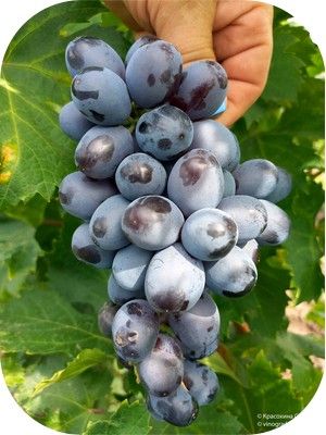 Ukrán magán nemesítés (Kalugin/ В.М.Калугин). Szülők: Talisman x kismis Ocenníj Korolevszkij. Erős növekedésű. Érési idő: 120 nap, augusztus második fele. Fürt: 500-800 g.,kúpos, kissé tömött, vagy közepesen laza. Bogyó: ovális, sötétkék, kissé kúpos, hamvas, 6-7 g.,magnélküli (I-II oszt.). A bogyó húsos, lédús, édes kiváló harmonikus ízű. Betegségekkel szembeni rezisztenciája nagyon magas. Fagy: -25 C°(nem hiteles adat).