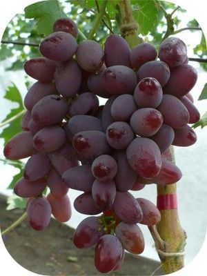 Orosz magán nemesítés (Kapeljusnüj / Капелюшный). Erős növekedésű biszexuális fajta. Érési idő: 90-95 nap (július második fele). Szülők: Viktória x Zagrava. Fürt: 500-1200 g., kúpos, szárnyas, közepesen laza. Bogyó: ovális, málna-rózsaszín, 42 x 30 mm.,10-16 g., húsos, lédús, íze gyümölcsös-muskotályos. Bőre vékony, de rugalmas. Cukor: 17-19%, sav: 6-7 g./l. Betegség ellenállás átlag felett. Fagy: -25 C°.