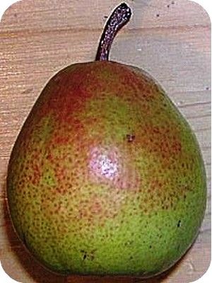 Gyümölcse: középnagy, sőt nagy, széles körte alakú, jellegzetesen szögletes profillal. Durva bordaszerűen hullámos. Tizedrészével hosszabb, mint amilyen széles. Színe aranysárga, amelyet narancsos, sőt kis részben halványpiros mosottság borít, Sűrűn, aprón pontozott. Kocsánya fás, mélyedésben ül, csészemélyedése mély, szűk. Húsa fehér, olvadó, bő levű, a magház körül gyengén kövecses. Íze jellegzetesen édesen savas, gyenge illattal. Igen jól tárolható, jól szállítható, de éretten nyomásra érzékeny.