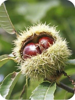 Hímnős barkavirágzata felállók, látványosak. Csúcsukon a virágzat nagy részét adó sárga porzók, alapjuknál a zöld termős virágok nyílnak, gyakran a porzóknál később. A megporzás után a termős virágok gömbbé növekednek; egy-egy ilyen gömbben két-három termés nő. Fényes, barna makktermése a gesztenye. Ennek kupacsa zöld, sűrűn tövises, szúrós.